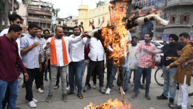 Indore में राहुल गांधी के बयान का विरोध, BJYM कार्यकर्ताओं ने पुतला जलाया