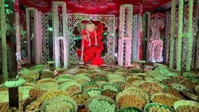 पितरेश्वर हनुमान धाम में सजा शीश महल, 51 क्विंटल मिठाईयों का महाभोग लगा