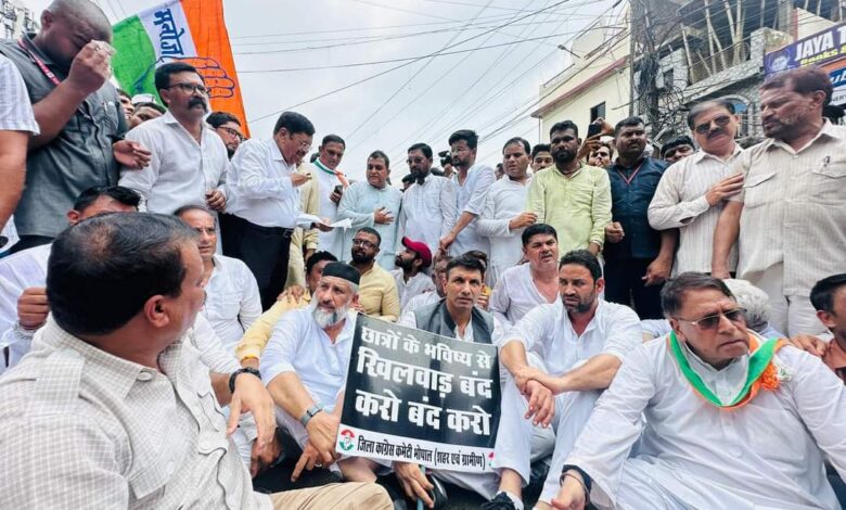 Bhopal: नर्सिंग घोटाले को लेकर कांग्रेस का प्रदर्शन, मंत्री विश्वास सारंग के खिलाफ कार्रवाई की मांग