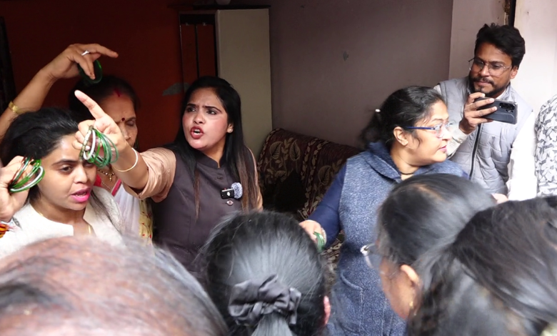 इंदौर के भागीरथपुरा में दूषित पानी से 8 लोगों की मौत के बाद महिला कांग्रेस प्रदेश अध्यक्ष रीना बौरासी सेतिया का आक्रोश देखने को मिला, रीना चूड़ियां लेकर स्थानीय पार्षद के घर पहुंची और जमकर हल्ला बोला।