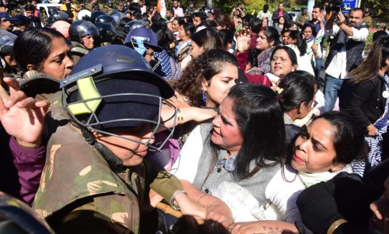MP: भोपाल में महिला कांग्रेस का प्रदर्शन, मंत्री विजय शाह पर एक्शन की मांग