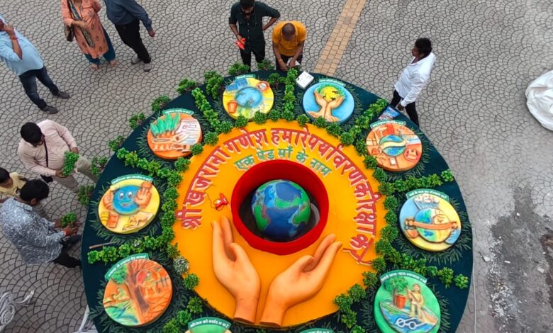 प्रधानमंत्री नरेंद्र मोदी ने एक पेड़ मां के नाम जो संदेश दिया था उसको आगे बढ़ते हुए पर्यावरण को संरक्षण करने की भावना से राखी का निर्माण किया गया है। इस विशालकाय राखी में “श्री खजराना गणेश हमारे पर्यावरण की रक्षा करें” व “एक पेड़ मां के नाम” संदेश दिया गया है । राखी के बीचो-बीच पृथ्वी है जो की लगातार गोल घूम रही है ।