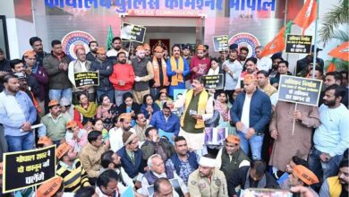 Bhopal news: हमले की घटना के विरोध में आलोक शर्मा, चाकूबाजी को लेकर किया प्रदर्शन